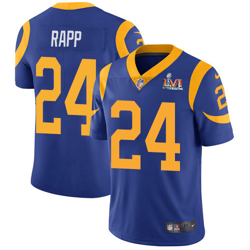 Delightful Rams #24 Taylor Rapp Royal Blue Alternate Super Bowl LVI Patch Men’s Stitched NFL Vapor Untouchable Limited Jersey Collectors this is a must have Add this Rams item to your collection
