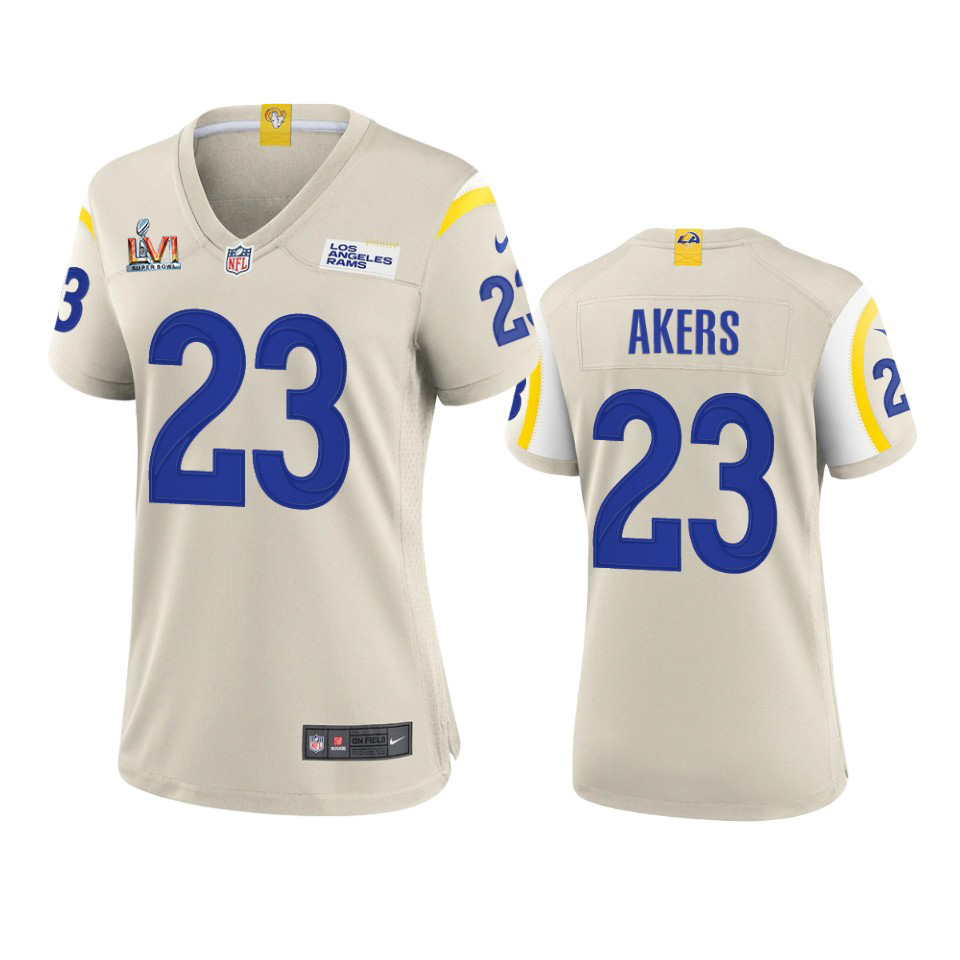 Fantastic Los Angeles Rams #23 Cam Akers Women’s Super Bowl LVI Patch Game NFL Jersey Bone Hurry Exclusive offer Place your order for Rams gear immediately
