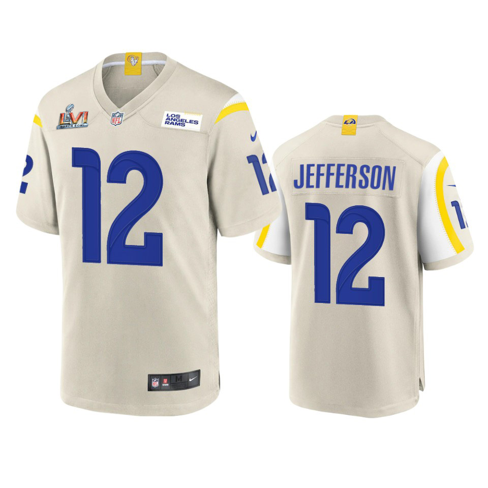 Magnificent Los Angeles Rams #12 Van Jefferson Men’s Super Bowl LVI Patch Game NFL Jersey – Bone for an immersive sports experience